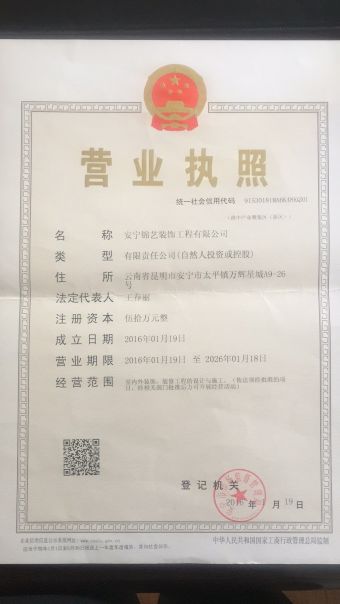 安宁 锦艺装饰工程有限公司成立于2015年,公司注册资金200万元,公司为股份制有限公司,锦艺装饰工程有限公司凭借自身不懈的努力和实力,先后完成昆华苑,澜山悦,山水融城,恒大金碧天下,盛世佳园,万辉星城等一百余处装修工程。锦艺装饰公司是以装饰设计、装饰施工为一体的综合性装饰行业。锦艺装饰公司设有行政管理部、办公室、平面策划、工程部、质检部、财务部、售后服务部等,各部门分工明确,责任到人,确保到装饰公司的客户全程及售后无忧。 锦艺装饰公司自成立以来,一直秉承“质量第一、信誉至上“的经营理念,通过服务创新,来满足我们所服务的客户潜在需求;通过技术创新来改变原是施工模式;通过工艺创新来提高施工质量,从而避免了业主使用中容易出现售后问题;通过材料统一配送,减少中间环节杜绝假货进入施工现场;通过不断创新的经营思路,使我们锦艺装饰公司逐步走向规范化、精致化、流程化、科学化。面对快速发展的装饰行业,锦艺装饰公司将既往开来,发扬“与时俱进,追求卓越“的元隆精神,凭借优质的工程质量、完善的服务体系,以市场化。多元化的精营理念开拓发展,创造出更加辉煌灿烂的锦艺装饰公司明天。
