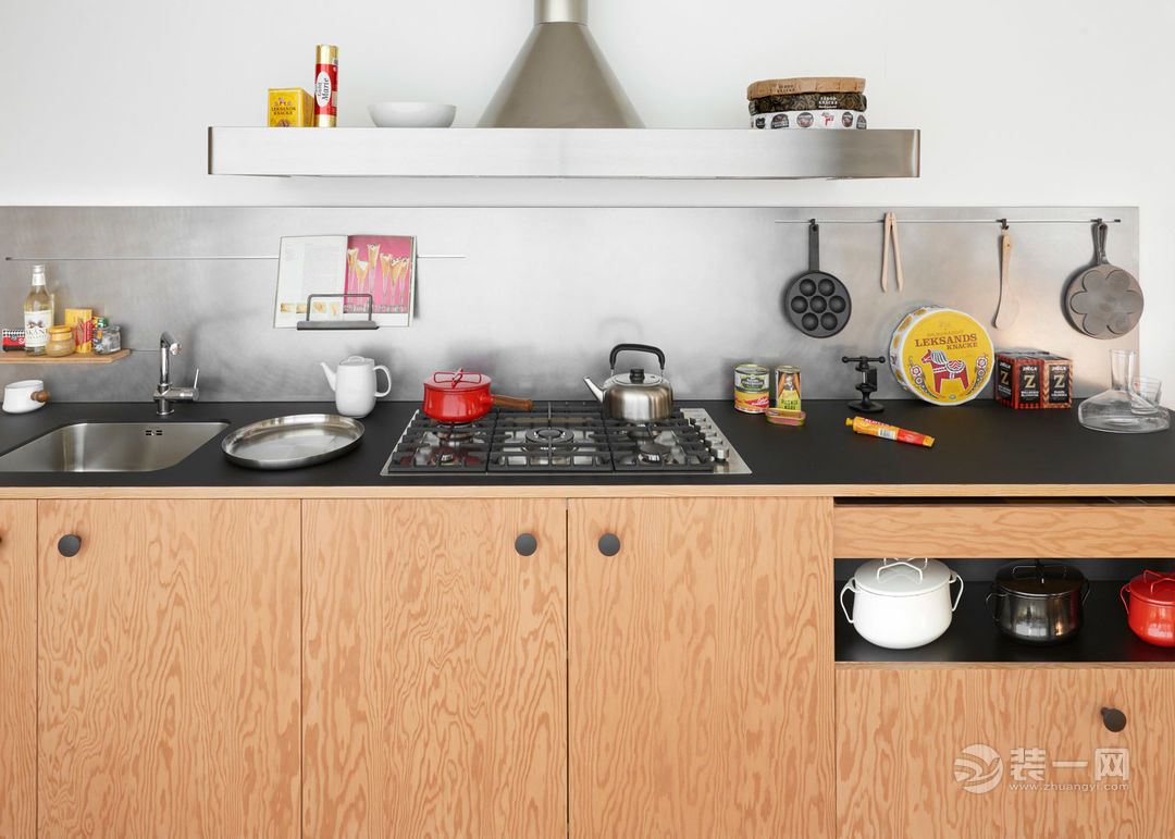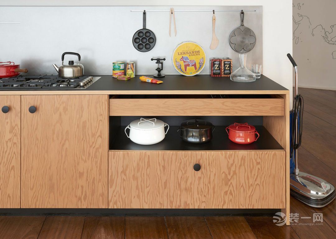 台面用的是木质纤维面板,每一面再用丙烯酸薄片进行包裹。制作橱柜的这种材料被称之为“Fenix NTM”,是意大利制造商Arpa Industriale 利用纳米技术制成,特点是可以自我修复一些轻微的划痕。