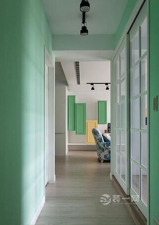 日光盈满白绿相间的廊道,呈现舒适宜人的美式乡间宅邸风情。