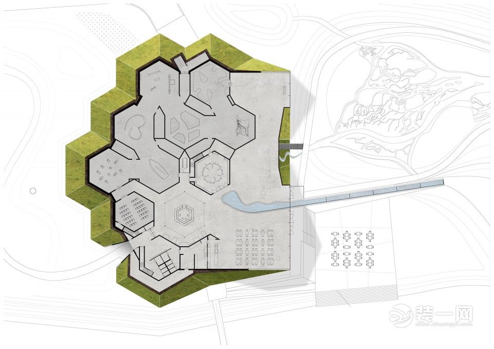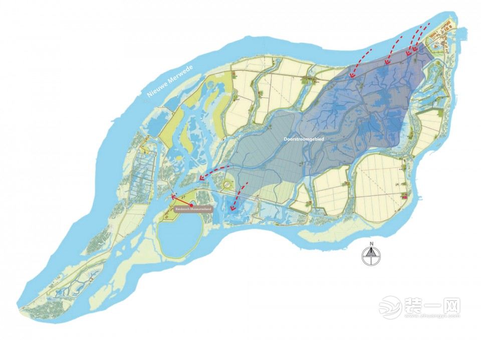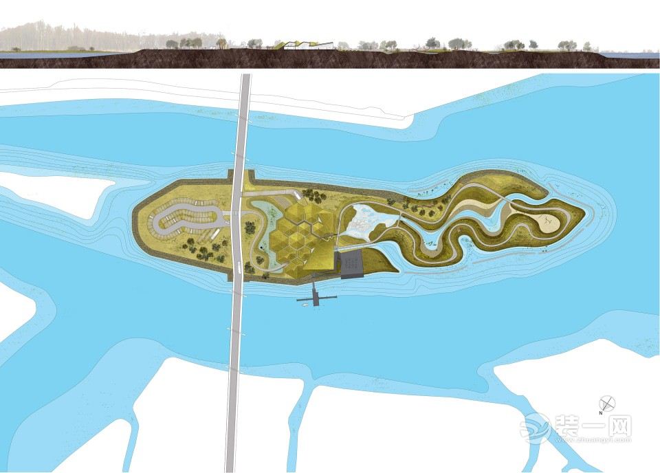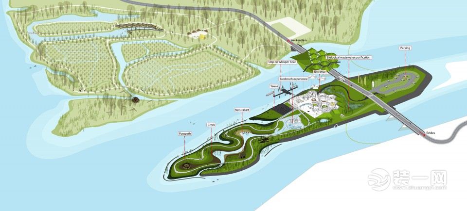 ▽Biesbosch博物馆岛布局图,layout of the Biesbosch Museum Island(点击看大图,drawings-click to enlarge)