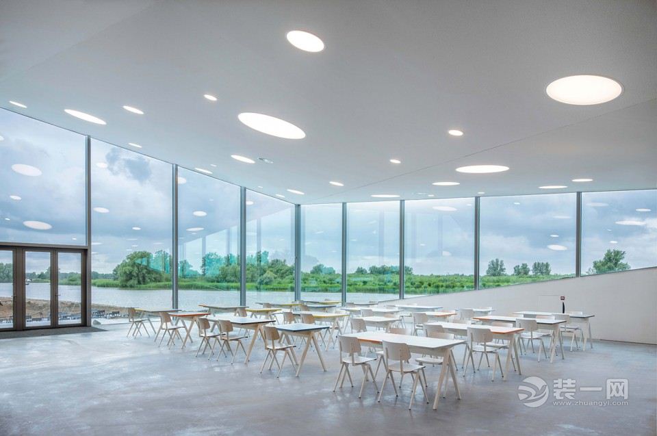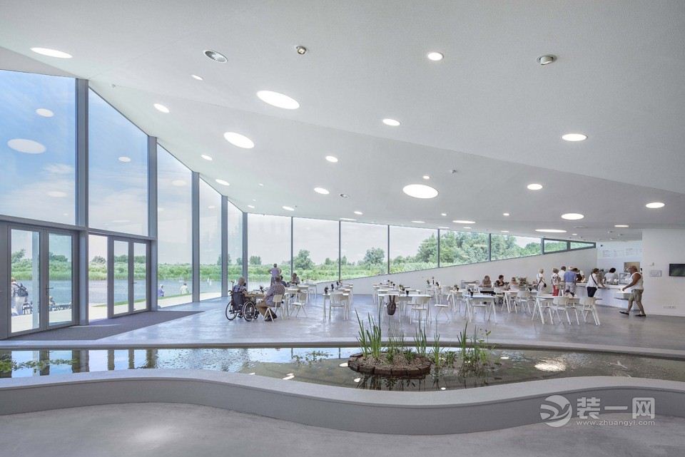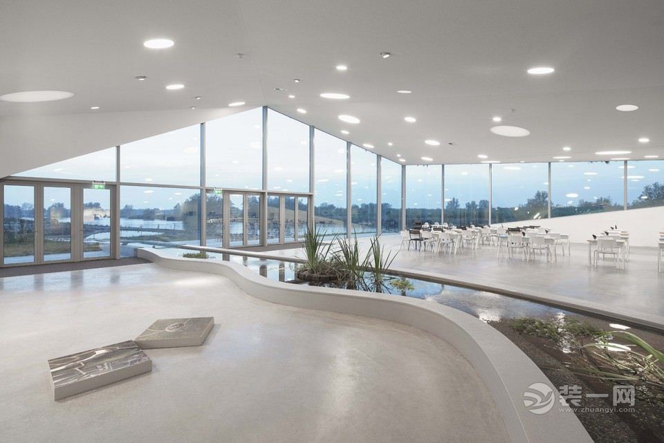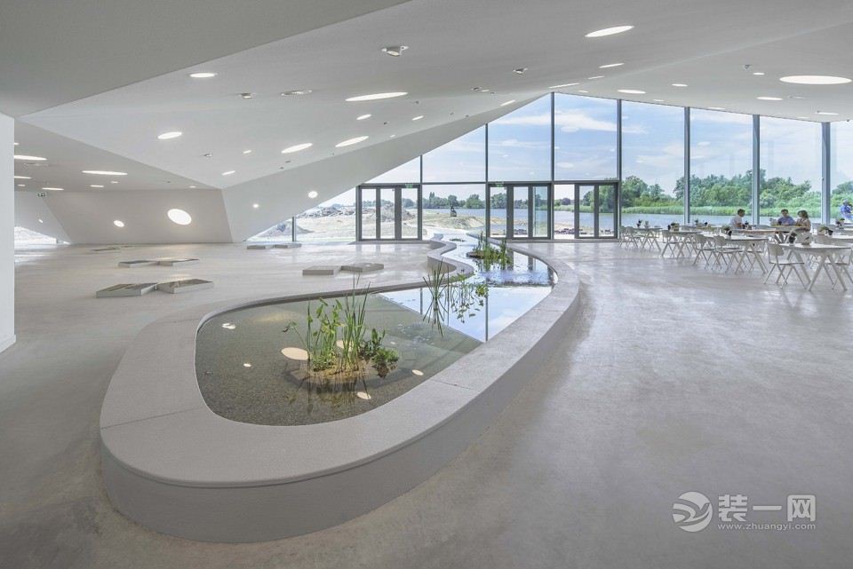 原有建筑内的功能空间包括常设展厅、图书馆、多功能剧场以及包括接待和博物馆商店在内的入口大厅。在那,游客可以获得游览Biesbosch国家公园的相关信息,购买进入博物馆的门票以及租用电动船。新开的天窗为荷兰林业委员会和公园理事会的工作人员提供了办公室采光。