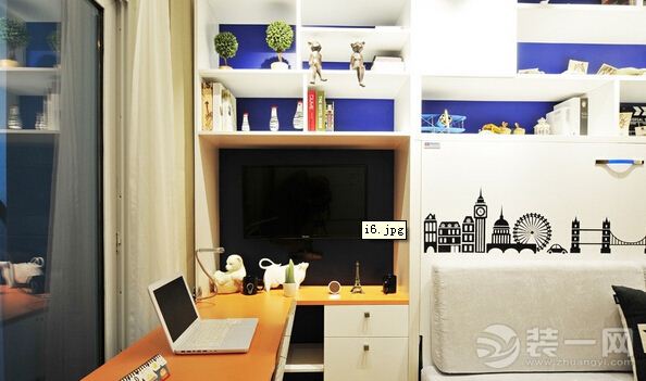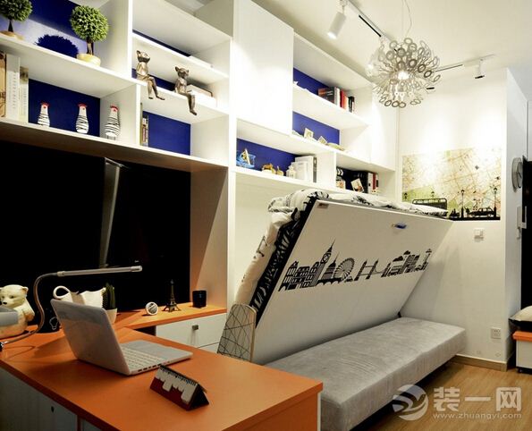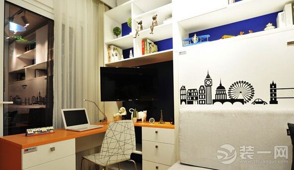 小户型智能家居装修效果图:平时不看电视的时候可以把电视收进去!小巧的电脑桌,一台电脑,对于工作一族,已绰绰有余!
