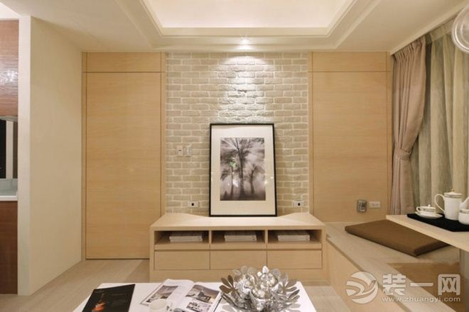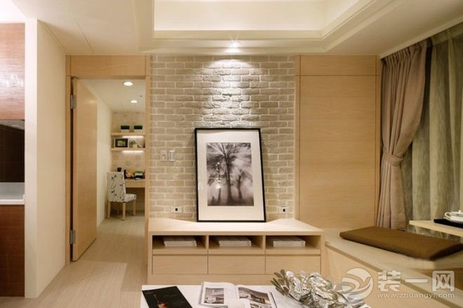 看看客厅的电视墙的对比设计,两扇对称的门左边的是次卧的门。墙后面就是卧室。