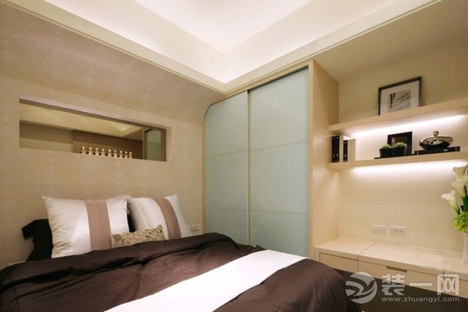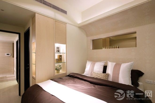主次卧的格局还是非常大气的哦~特别是对于这个小户型,次卧是在电视墙的背后主卧就在进门右手的门站在餐厅那边能看到的~