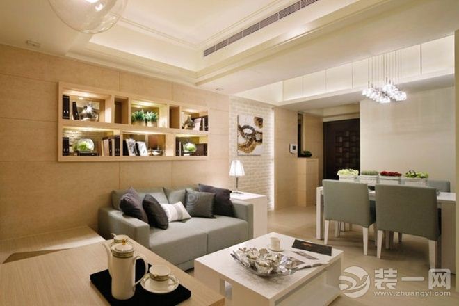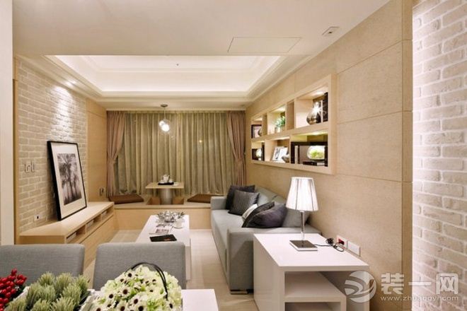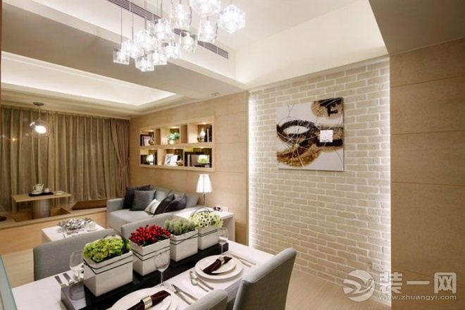 这样本来不大的客厅空间一下显得多功能实用了呢。背景墙的设计也非常有现代感,镜面的修饰让空间有了些神秘与扩容。错落随意的格局也表达了一定的细腻心思。