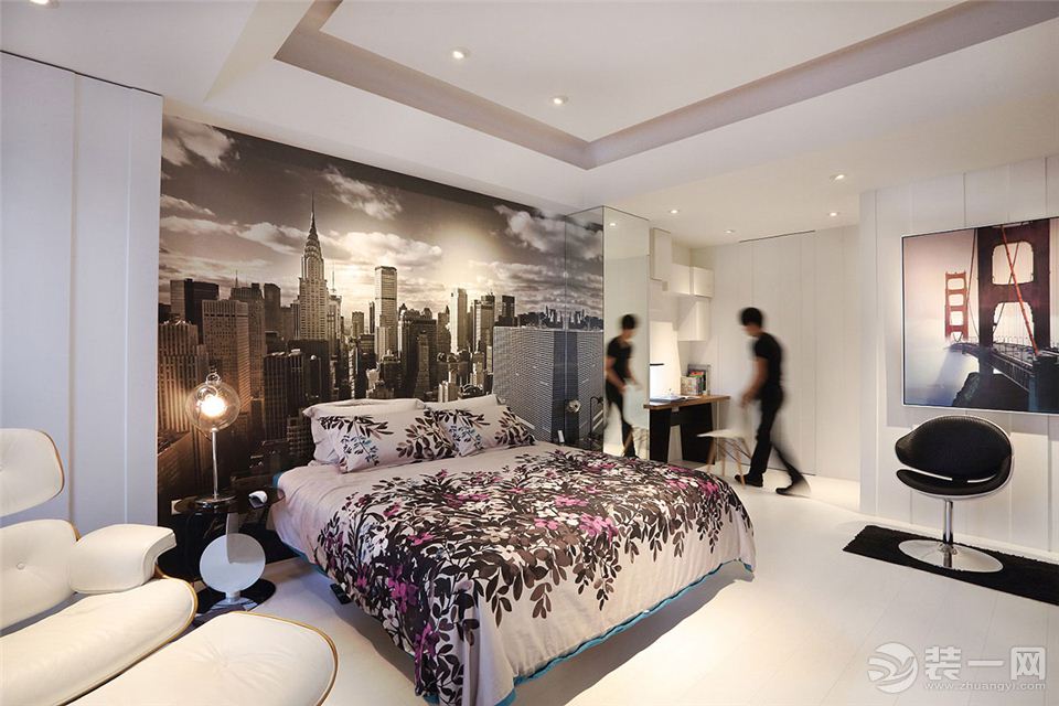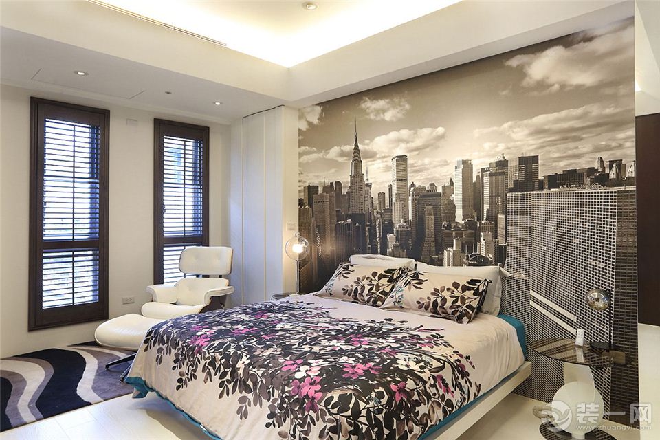 刻意拉高至天际线上的开门,视觉中的厚实份量营造大器尺度,而床头旁造型柜体则隐入电信箱所生的滞碍凌乱。