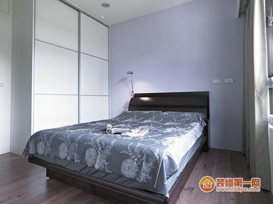 编辑点评:单纯为睡眠休息使用的卧室,不特别强化机能,仅满足基本的收纳需求,电视墙后方为更衣室。