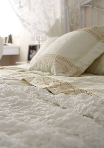 白色基底在床单选用上有着一致性的色彩延续,简单的花样滚边氛围加分。