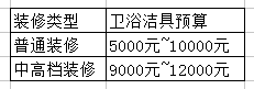 卫浴洁具是家庭装修中重要的主材,不能够太省钱。普通装修的业主可以选择一些大众知名品牌如安华、恒洁、法恩莎、欧路莎、惠达等品牌,他们会推出一些特价套餐产品,马桶、面盆(浴室柜)、花洒等在一起售价在5000~10000元左右,消费者可以在其做活动时考虑购买,比较划算。而比较高端的品牌在价格方面相差也非常悬殊。