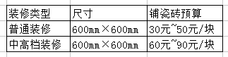 注:每平米瓷砖算法1/(瓷砖长度×宽度)长宽都为600mm,每平米为1/(0.6×0.6)≈3块