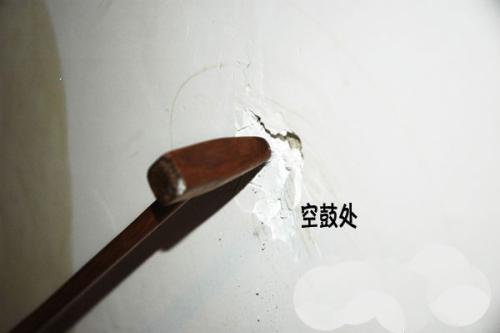 拿长尺靠近墙壁以及地面,检查看看墙面地面是否平整,同时观察是否有划痕裂纹(常见的四大裂痕:强度裂缝、沉降裂缝、温度裂缝、变形裂缝)、是否有外漏的铁丝网、钢筋以及检查墙面是否有爆点。(爆点:生石灰在发成熟石灰时因搅拌不匀未发好,抹在墙上就会形成爆点,用铁器敲打“爆点”时,就会发现大面积的疏松、脱落等质量问题。)