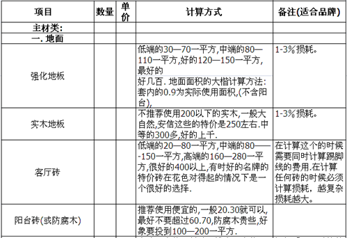 2.在进行计算装修预算报价时,需要根据实际空间面积来进行计价的,将平面设计图中的铺砖尺寸进行计算。因为一些装修项目的单项价格较高,实际施工花费会高出预算报价很多,所以需要算上一定比例的损耗,在预算报价表应体现铺砖实际面积和损耗面积之和。