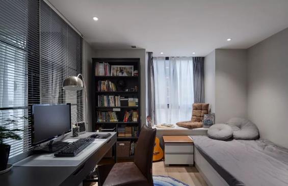 一个小房间能不能同时实现书房、卧室、储物等功能呢?当然是可以的。但小户型卧室装修什么功能都想搞定也是不现实的,要分清主次,需要,用得频繁的是什么功能?一般都希望满足收纳功能。