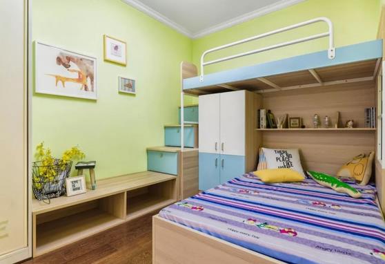 比如双层床对于儿童房来说是可以提供多功能的。就算是小到只能摆下一张床,也可以做成一个房间