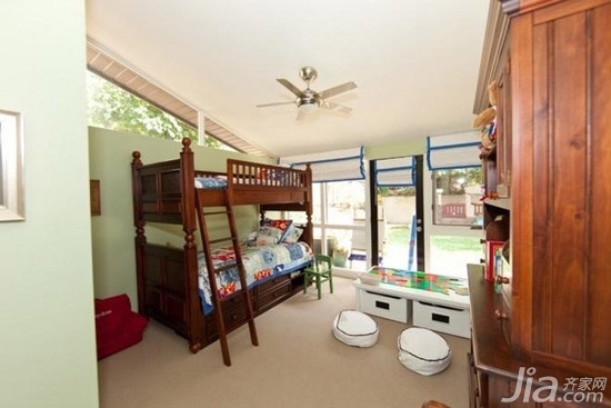 推荐理由:白色的衣柜配上圆形的梳妆镜,甚是可爱。简单清新的装扮给孩子一个洁净的童年。