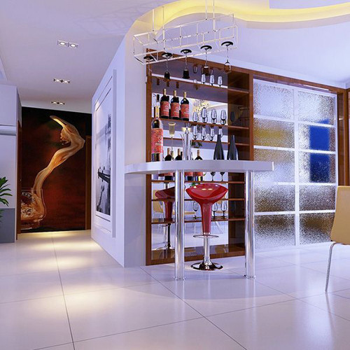 陈列架式酒柜采用现代家具的设计思路,款式新潮,为了达到餐厅与客厅完美隔断,许多人会选择这种像古代陈列架一样的酒柜,既能将空间隔断,也方便主人的取存。