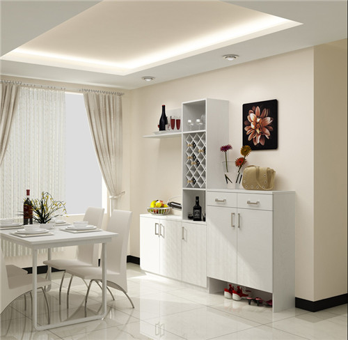 餐边酒柜主要是放置于餐厅的一种酒柜,它不仅具有储藏美酒的功能,同时又能存放餐具,实用性非常强。