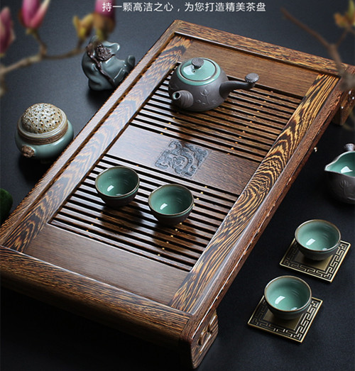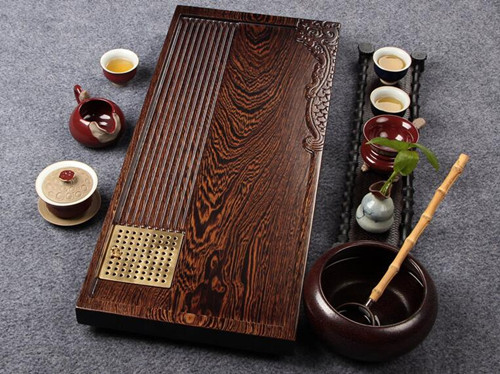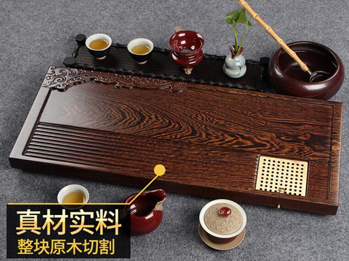 鸡翅木主要生长于东南亚地区,纹理清晰,颜色深浅相见,属于比较好的一种木材,而且鸡翅木还有一股淡淡的香味,所以一直深受文人雅士的喜爱。这些文人雅士用鸡翅木做成的茶盘来喝乌龙茶、普洱等功夫茶道,所以鸡翅木茶盘一般都是采用上等的非洲鸡翅木制成的。