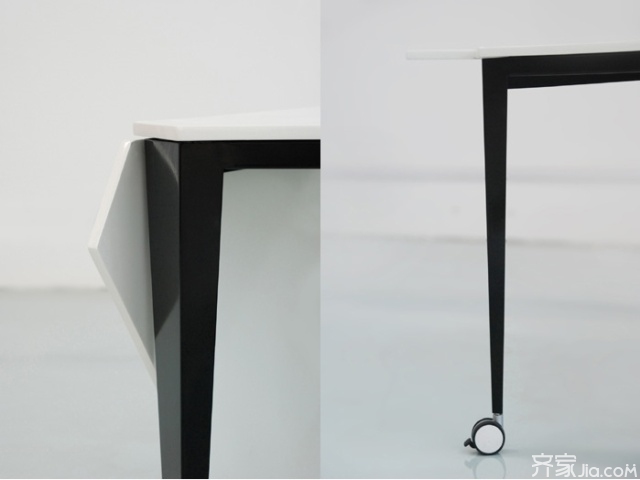 这款桌子是由众多个四边形可移动小方桌移动组成,单个摆放就是一个独立的工作桌,组合在一起可以成为众多组合方式的会议桌。