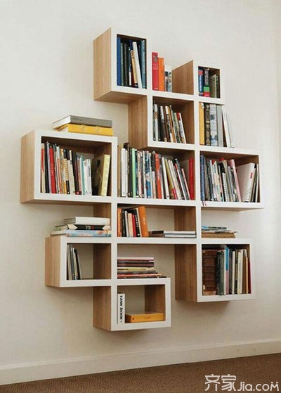 墙面上涌吊柜设计而成的书柜时尚新颖,虽然盛放书籍不多,但是整体颜值还是挺高的,用创意书架来做墙面装饰绝对是一举两得的选择,线条勾勒出的几何图案成为墙面上的最大亮点。
