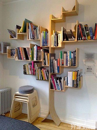 树状的书架不但美观实用,而且拥有特别的寓意。大树伸展出的枝杈上塞满了各种各样的书籍,用阅读充实心灵,人的精神世界也会像大树一样茁壮成长。