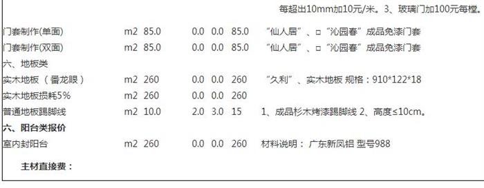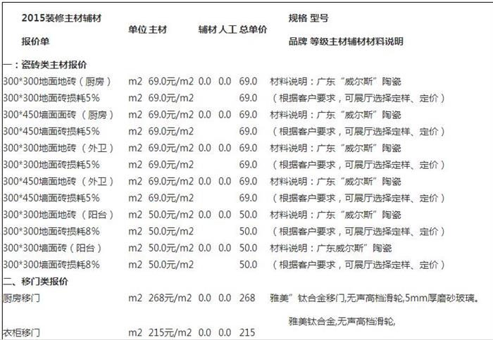 为了更形象的说明家庭装修中的主材详细报价,设计456网现在给各位业主展示一份主材清单报价案,作为大家以后装修的参考。主材清单如下: