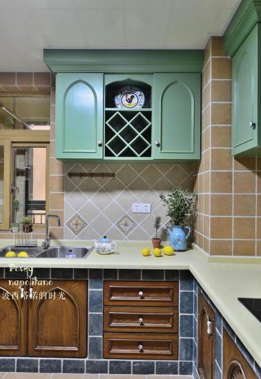 3、厨房延展高效利用、客卫干区与生活阳台打通后矮墙地中海式门洞小砖搭配