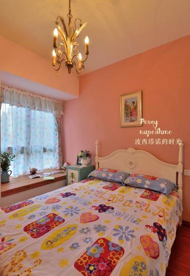 女儿房依然是粉色系为主,衣柜是在外面定做的,白色,自己绣的十字绣拿来挂在房间里面了