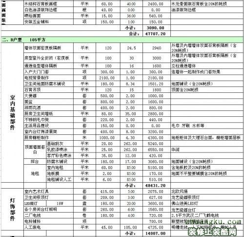 下面,分享一份的120平清水房装修造价表供大家参考: