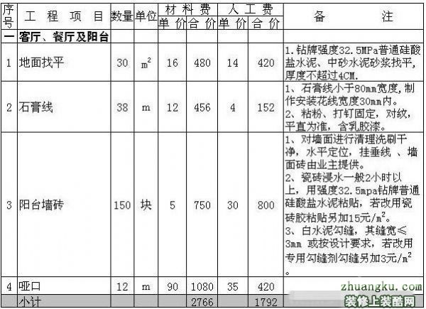 80平米装修费用清单之客厅、餐厅及阳台部分