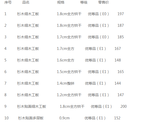 莫干山集成材杉木系列12mmE1级集成板参考价格:¥153元