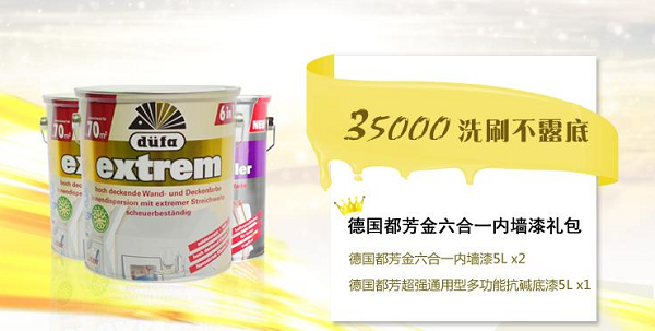 3、德国都芳伯爵内墙漆:德国都芳漆系列产品中端的产品,德国五星产品,高档别墅专用漆;拥有超强的遮盖能力和耐擦洗能力(达10万次),能有效覆盖细微裂纹。