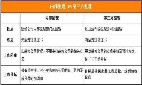 一般来说,很多装修公司都有自己的内部监理,但往往大多没有监理资质证书,而正规监理则是必须要具有市建委颁发的监理资质,内部监理更像是工地巡检。