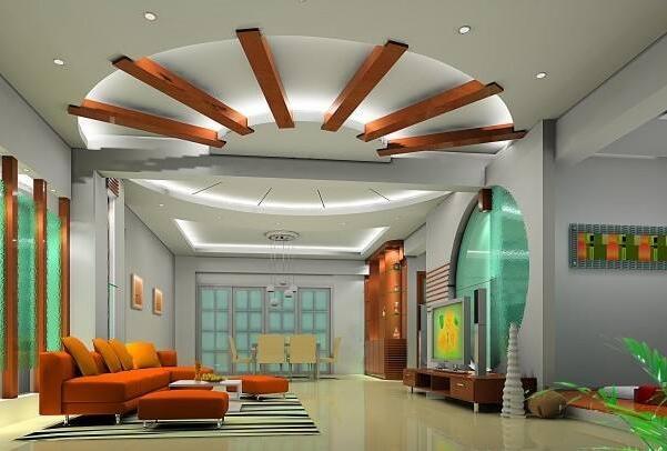 (2)根据房间的净高来确定灯饰的大小,如果你家的大厅比较高挑,净高超过3.2m的话,那可以选择长一些的吊灯,或一个较大的圆形吊灯,这样可以让客厅显得富丽堂皇;如果客厅净高在2.8-3.1米左右,可以选择60厘米以内的多头吊灯或者档次高、规格尺寸稍大一点的吸顶灯,如水晶吸顶灯、亚克力平板吸顶灯等,这样能使客厅显得明快大方。