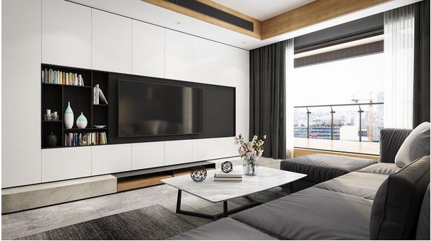 定制的嵌入式电视柜,收纳力强,既可以营造出简洁大气的视觉效果,又能收纳书籍、收藏品或日常小物等,兼具实用与美观。