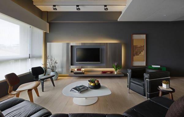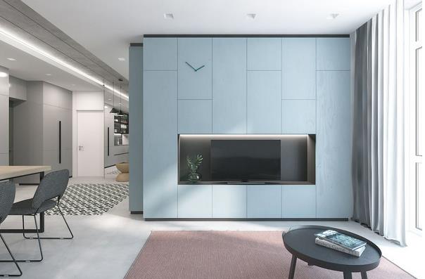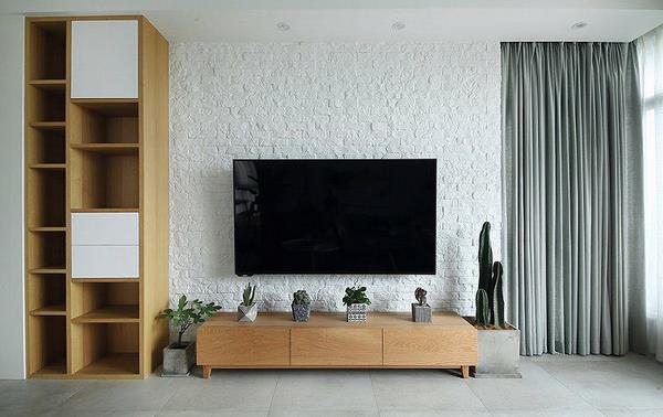 如果家里有很多物品需要收纳,我们可以巧妙的利用电视那面墙,对电视柜的外观加以重新的定义和划分,让电视背景墙空间呈现出多层次的魅力。