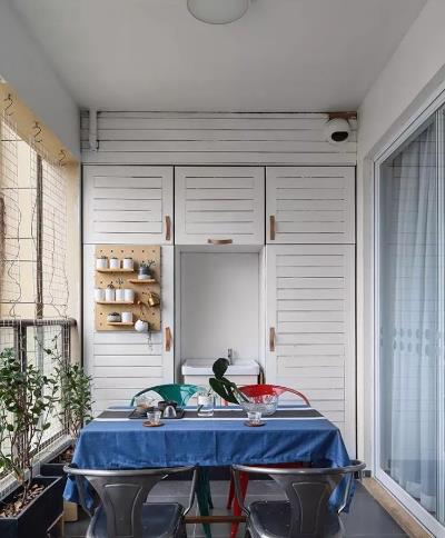 如果你家是封闭式的阳台,可以考虑在阳台上装收纳柜,柜子的功能得与阳台功能匹配。这个柜子可能是用来收纳洗衣用品,也可能是收纳书籍、衣服等物品,柜子的尺寸大小,要根据阳台的尺寸,及阳台的承重来多方考虑。