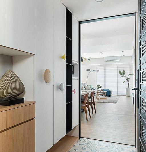 门厅装柜子是很多家庭的选择,不仅解决了入门的收纳问题,还能缓解大门正对客餐厅的尴尬。对于门厅柜子,衣帽柜+鞋柜是比较nice的组合,当然这个也得看个人家庭需求。