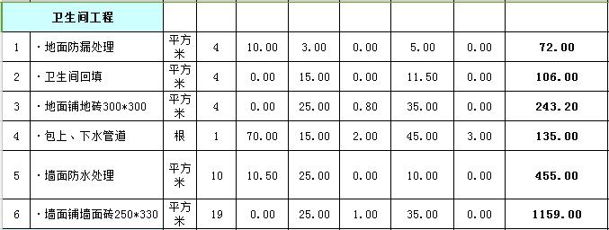 生活阳台工程1·顶面腻子平方米5.009.000.810.008.500.2092.532·顶面乳胶漆(多乐士家丽安净味)平方米5.003.001.000.002.500.2033.503·地面防漏处理平方米5.0012.0025.000.0010.000.00235.004·地面铺地砖平方米5.000.0025.000.0035.000.00300.00