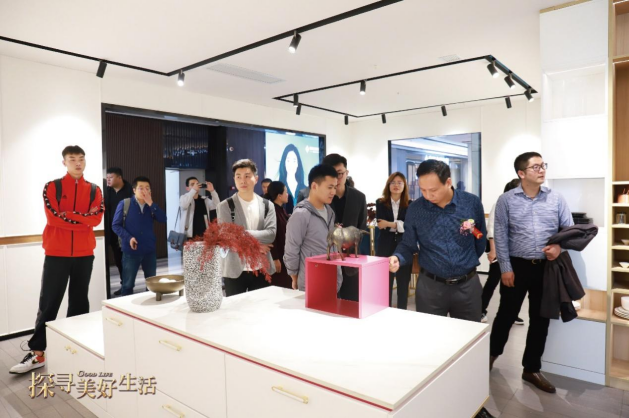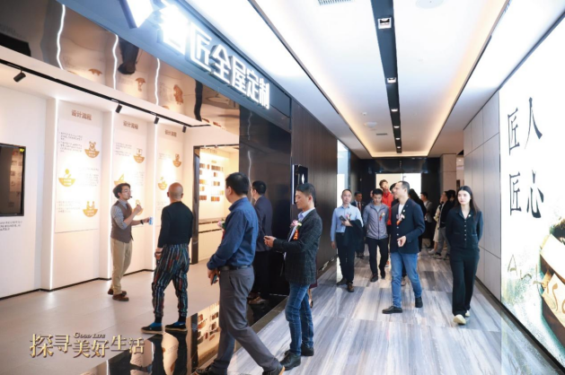 随后,各位领导及媒体记者共同走进奢匠旗舰展厅,在奢匠研发部梁华波老师的带领下参观品牌科技馆、工法展示馆、样品展厅以及木文化博物馆,了解奢匠品牌发展脉络,零距离鉴证奢匠的颜质产品,全方位感受奢匠魅力。