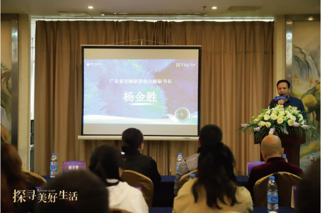 广东省定制家居协会副秘书长杨金胜先生代表协会发言,杨总跟大家分享了多年的从业经验,共同探索未来家居大方向,杨总表示,现场参观完奢匠展厅后,确实被奢匠的成绩所震撼,同时也给与了奢匠团队由衷的肯定和鼓励。