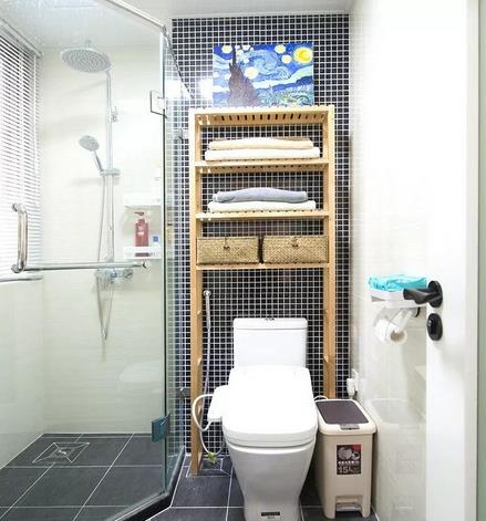 一般可以做成3-4层架子,可以放不少东西,而且如果遇到坑距问题,马桶背后距离墙面有一段小距离的话,这种置物架还可以弱化这个空缺