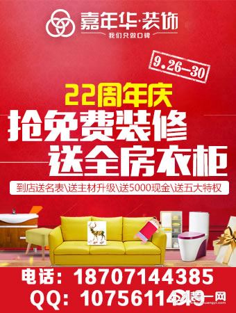 9月26日-30日,武汉嘉年华装饰公司22周年庆典,抢免费装修,送全房衣柜!最棒的装修季节,大力度的优惠活动!千万不要再错过了!