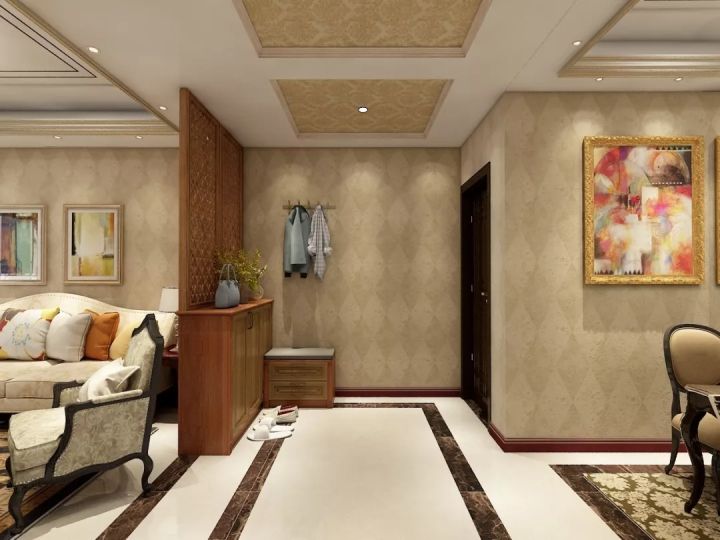 对于没有玄关的客厅来说就可以设计一个比较简单的玄关。
