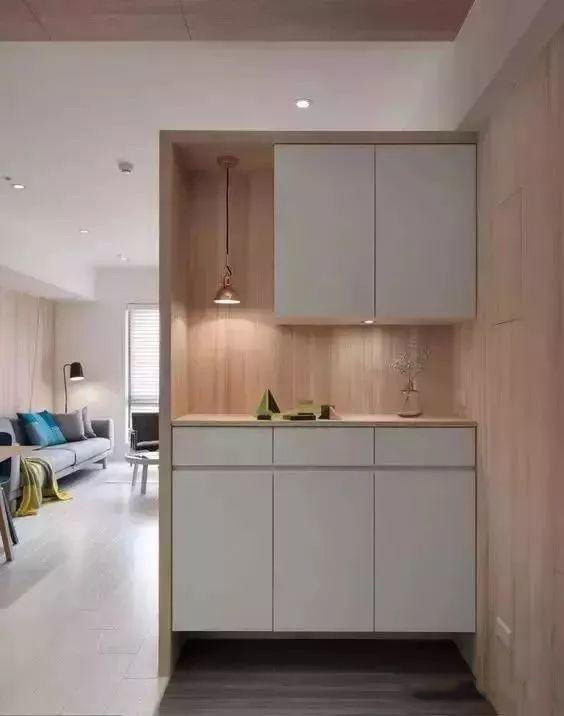 一是利用鞋柜来进行隔断,这种方法比较适合入户门靠墙,另一侧是客厅的户型。