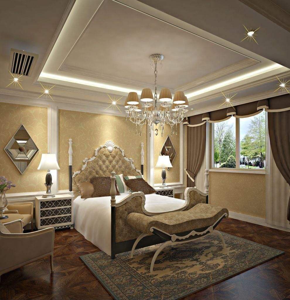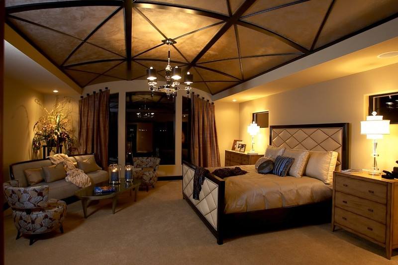卧室的面积较大那个就可以尝试一下那些比较复杂的吊顶方式,比如跌级吊顶、异形吊顶以及混搭吊顶等。