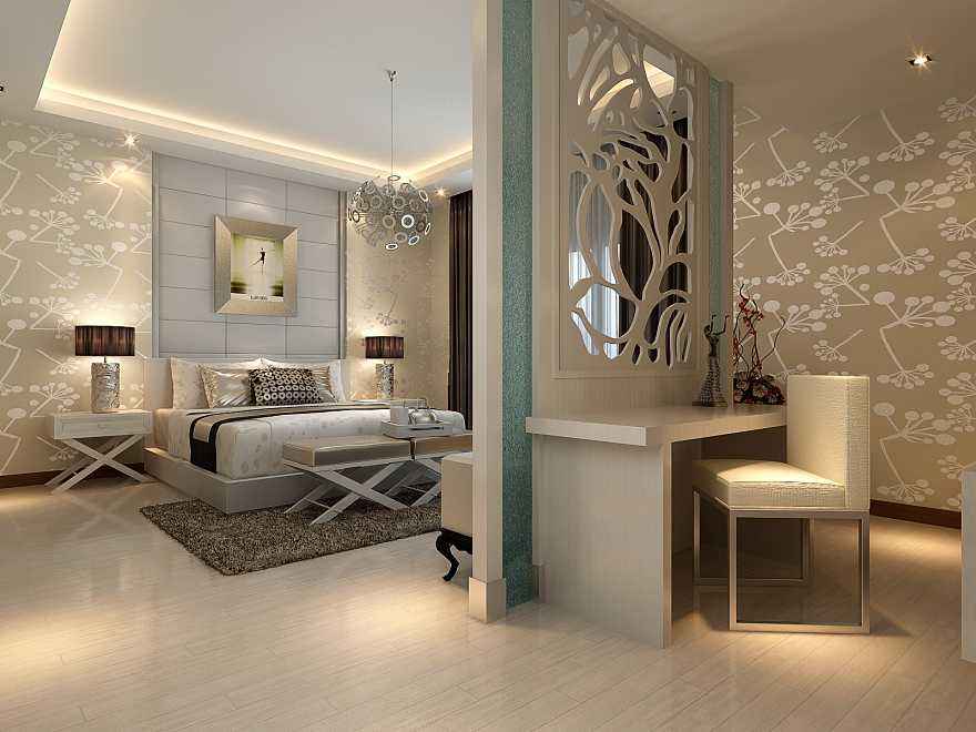 大面积卧室吊顶设计还是比较重要的,尤其是在卧室里面有单独空了一块区域当做书房或者衣帽间的情况时,我们可以选择用吊顶来将两个空间来区分开来!虽然在这两个区域不是用的隔断来区分功能,但是利用吊顶其实也能达到功能区分的特点。然后根据功能区域,选择较为适合的灯具。
