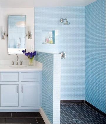 蓝色:如水的色彩,休闲与平静,冰心沁凉,是浴室里最受欢迎的色彩,仿佛悠游于大海中。