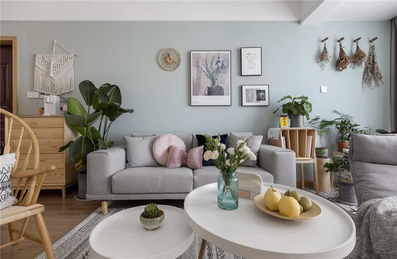 2、北欧风格带有浓郁的森林气息,有点偏向地中海的风格,以米黄、蓝色、银色和紫色为主,(黄色代表沙滩,蓝色代表大海,银色代表着太阳照在沙滩看起来像白银的那种感觉,紫色代表着紫丁花),感觉就像欧式和北美乡村风格的结合。非常受当代年轻人的喜爱。