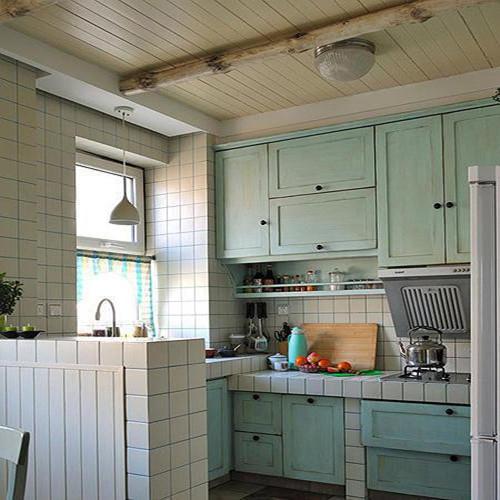 4、橱柜的购买与安装。灶台与瓷砖都安装好之后,橱柜就应该进场了。装家网设计师建议在选购橱柜时一定要货比三家,作为厨房电器中唯一的大件,橱柜的选择要考虑家中水电分布,天然气管道分布,颜色与整体风格的搭配。